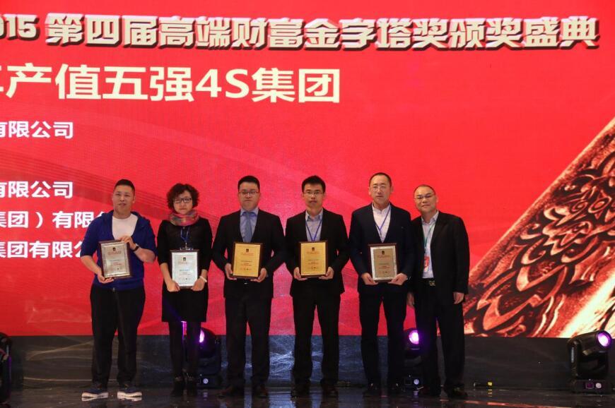 1月10日,由中國汽車后市場總會主辦,點金國際傳媒與玩車網(wǎng)共同協(xié)辦的第四屆 “索菱杯”中國汽車后市場2015年度高端財富金字塔獎頒獎盛典在深圳舉行。盈眾汽車集團榮獲“年度優(yōu)秀精品運營十強4S集團”及“年度精品單車產(chǎn)值五強4S集團”榮譽。聯(lián)合車尚董事長呂惠娟作為代表上臺領獎,獎項由點金國際傳媒掌門人譚榮耀先生頒發(fā)。
