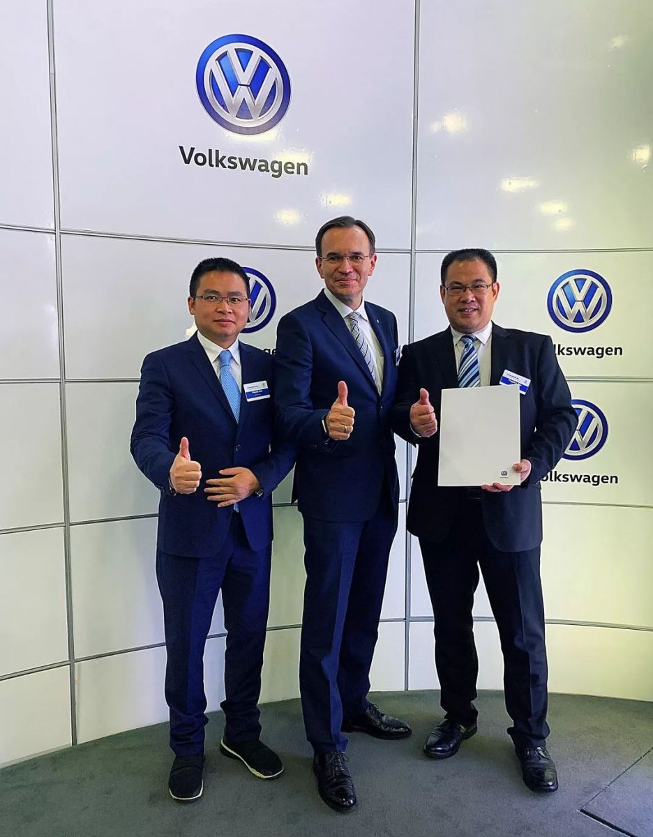 盈眾汽車(chē)代表孫聘仁、高廷建與大眾集團(tuán)領(lǐng)導(dǎo)及獲獎(jiǎng)中國(guó)經(jīng)銷(xiāo)商伙伴合影留念
