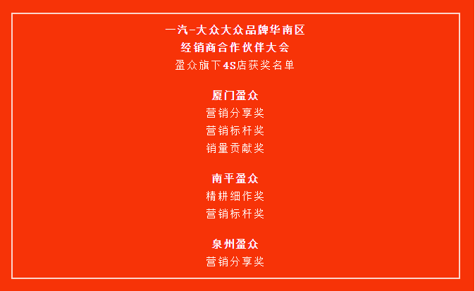 喜報 | 熱烈祝賀盈眾一汽-大眾團(tuán)隊(duì)榮獲華南區(qū)多項(xiàng)榮譽(yù)