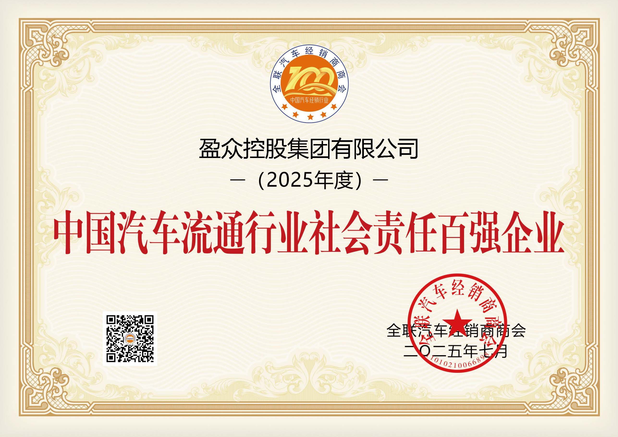 同時(shí),盈眾控股集團(tuán)還入選“中國汽車流通行業(yè)社會責(zé)任百強(qiáng)企業(yè)”和“中國新能源汽車銷售百強(qiáng)榜”等榮譽(yù),不僅彰顯了盈眾在汽車流通行業(yè)中的競爭力,也是對其品牌影響力的高度認(rèn)可。